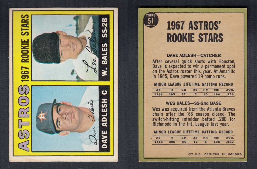 ITEM# : CS80985333 1967 O-PEE-CHEE BASEBALL CARD #51 ASTROS ROOKIE STARS DESCRIPTION 1967 O-PEE-CHEE BASEBALL CARD #51 ASTROS ROOKIE STARS CONDITION EX