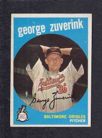 ITEM# : CS81186851 1959 TOPPS BASEBALL CARD #219 G. ZUVERING DESCRIPTION 1959 TOPPS BASEBALL CARD #219 G. ZUVERING CONDITION EX+ NO CREASE PRICE $2.99 USD SHIPPING CANADA RESIDENT $3