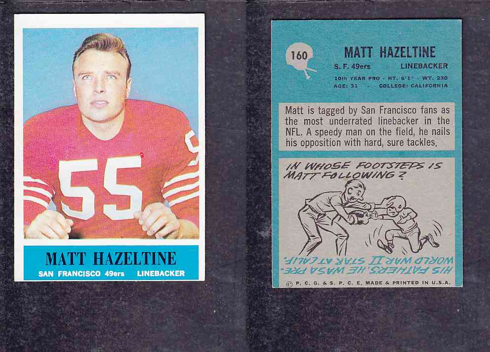 ITEM# : CS81704826 1965 NFL PHILADELPHIA FOOTBALL CARD #160 M. HAZELTINE DESCRIPTION 1965 NFL PHILADELPHIA FOOTBALL CARD #160 M. HAZELTINE CONDITION NRMINT NO CREASE PRICE $2.99 USD SHIPPING CANADA RESIDENT $3.00