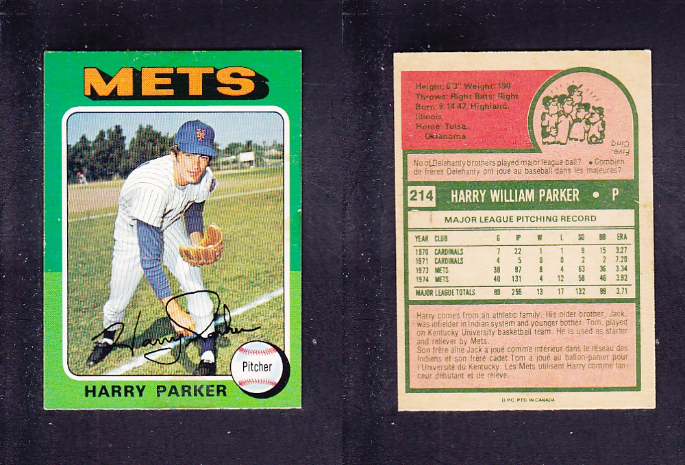 ITEM# : CS82692052 1975 O-PEE-CHEE BASEBALL CARD #214 H. PARKER DESCRIPTION 1975 O-PEE-CHEE BASEBALL CARD #214 H. PARKER CONDITION VG NO CREASE PRICE $1.99 USD SHIPPING CANADA RESIDENT 3.00$
