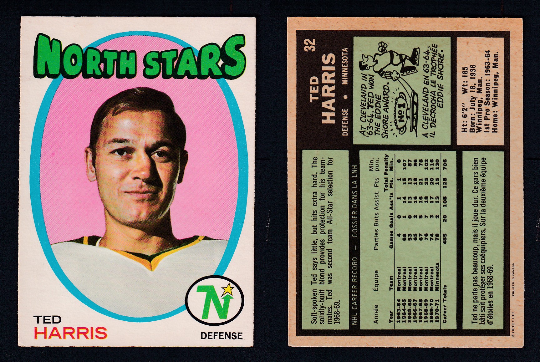 1971-72 O-PEE-CHEE HOCKEY CARD #32 T. HARRIS