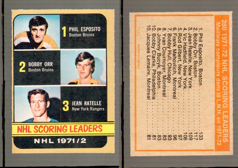1972-73 O-PEE-CHEE HOCKEY CARD #280 NHL SCORING LEADERS