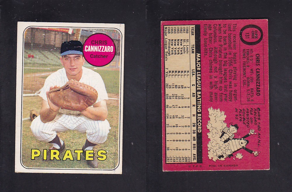ITEM# : CS84602989 1969 O-PEE-CHEE BASEBALL CARD #131 C. CANNIZZARO DESCRIPTION 1969 O-PEE-CHEE BASEBALL CARD #131 C. CANNIZZARO CONDITION EX+ NO CREASE PRICE $2.99 USD SHIPPING CANADA RESIDENT 3.00$