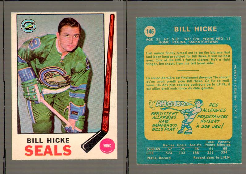 ITEM# : CS84981021 1969-70 O-PEE-CHEE HOCKEY CARD #145 BILL HICKE DESCRIPTION 1969-70 O-PEE-CHEE HOCKEY CARD #145 BILL HICKE CONDITION EX+ NO CREASE PRICE $3.99 USD SHIPPING CANADA RESIDENT $3.00