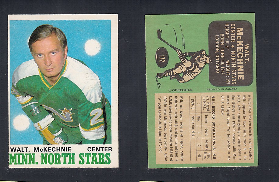 ITEM# : CS85542652 1970-71 O-PEE-CHEE HOCKEY CARD #172 W. McKECHNIE DESCRIPTION 1970-71 O-PEE-CHEE HOCKEY CARD #172 W. McKECHNIE CONDITION EX/MINT NO CREASE PRICE $4.99 USD SHIPPING CANADA RESIDENT 3.00$