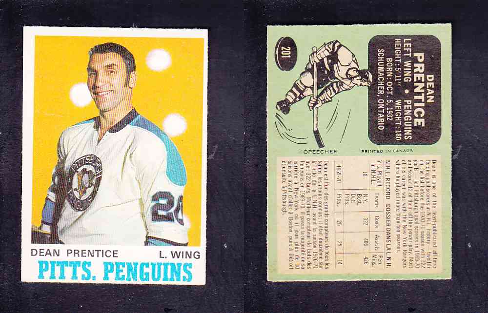 ITEM# : CS85710896 1970-71 O-PEE-CHEE HOCKEY CARD #201 D. PRENTICE DESCRIPTION 1970-71 O-PEE-CHEE HOCKEY CARD #201 D. PRENTICE CONDITION NRMINT NO CREASE PRICE $4.99 USD SHIPPING CANADA RESIDENT $3.00