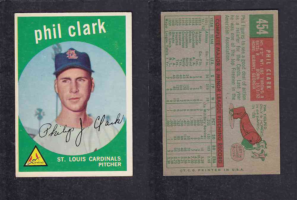 1959 TOPPS BASEBALL CARD #454   P. CLARK photo