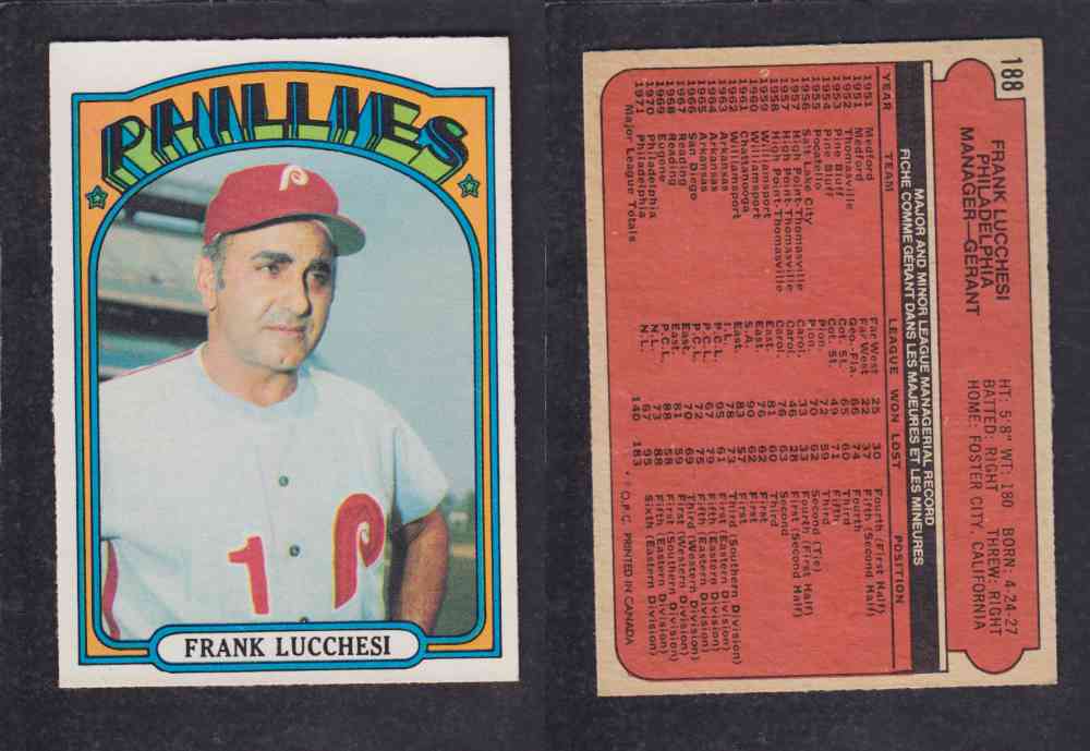 1972 O-PEE-CHEE BASEBALL CARD #188 F. LUCCHESI photo