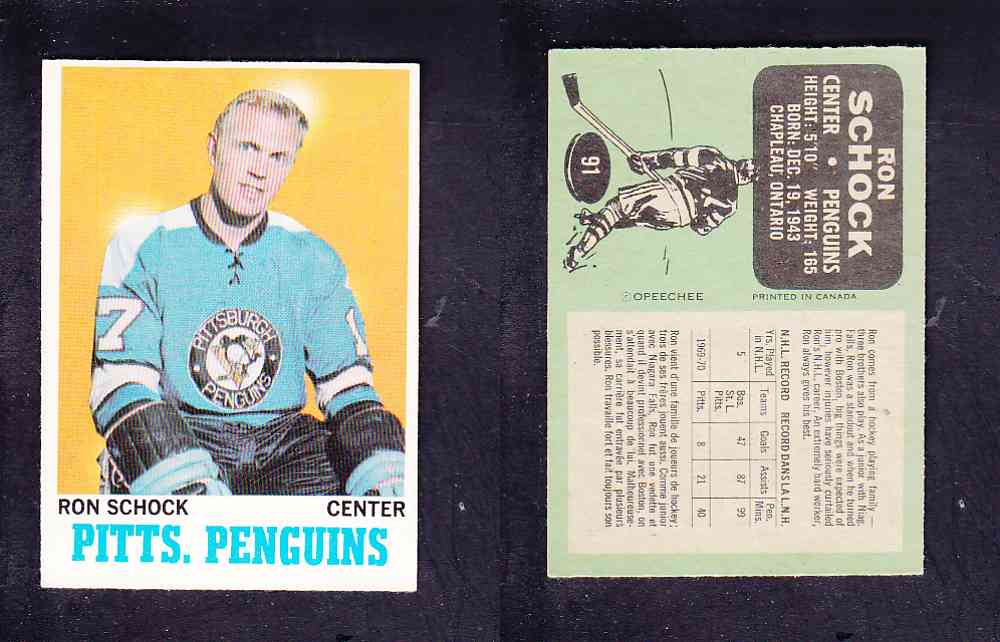 ITEM# : CS88122869 1970-71 O-PEE-CHEE HOCKEY CARD #91 R. SCHOCK DESCRIPTION 1970-71 O-PEE-CHEE HOCKEY CARD #91 R. SCHOCK CONDITION EX+ NO CREASE PRICE $4.99 USD SHIPPING CANADA RESIDENT $3.00