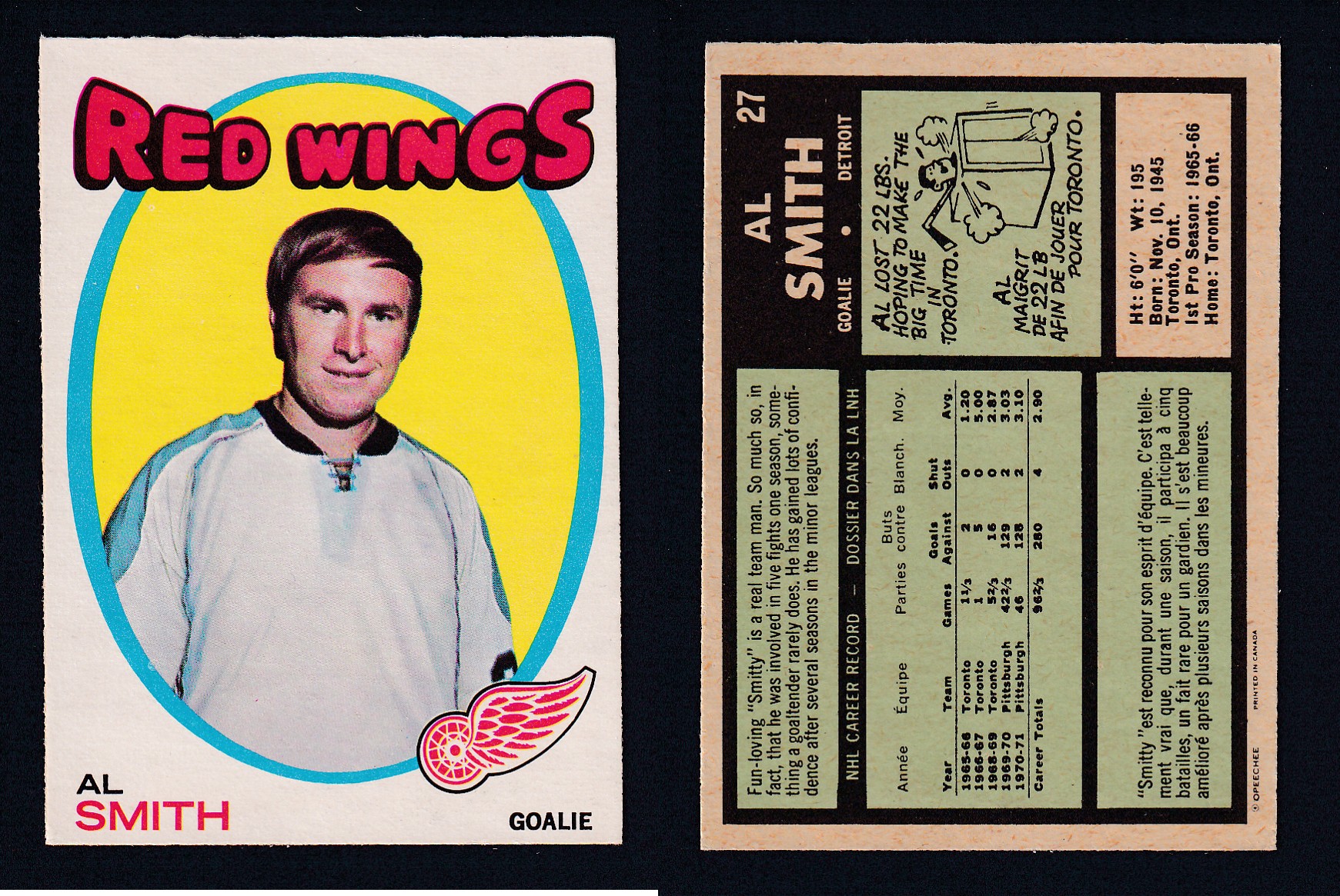 ITEM# : CS90391219 1971-72 O-PEE-CHEE HOCKEY CARD #27 A. SMITH DESCRIPTION 1971-72 O-PEE-CHEE HOCKEY CARD #27 A. SMITH CONDITION EX/MINT NO CREASE PRICE $4.99 USD SHIPPING CANADA RESIDENT 3.00$