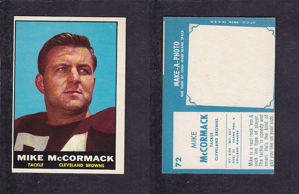 1961 NFL TOPPS FOOTBALL CARD #72 M. MCCORMACK photo