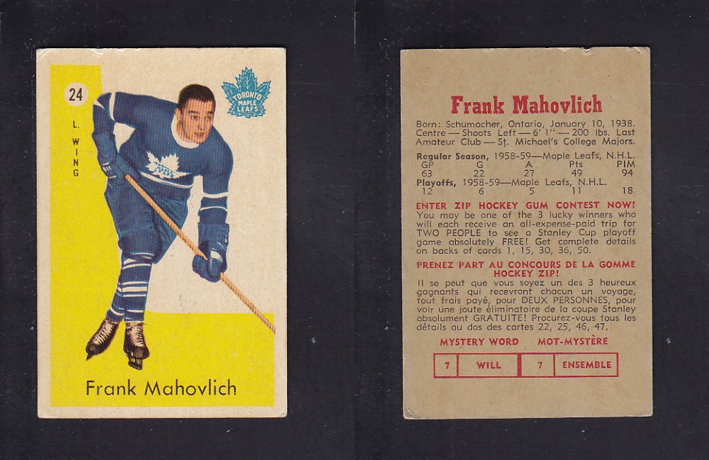 1959-60 PARKHURST HOCKEY CARD #24 F. MAHOVLICH