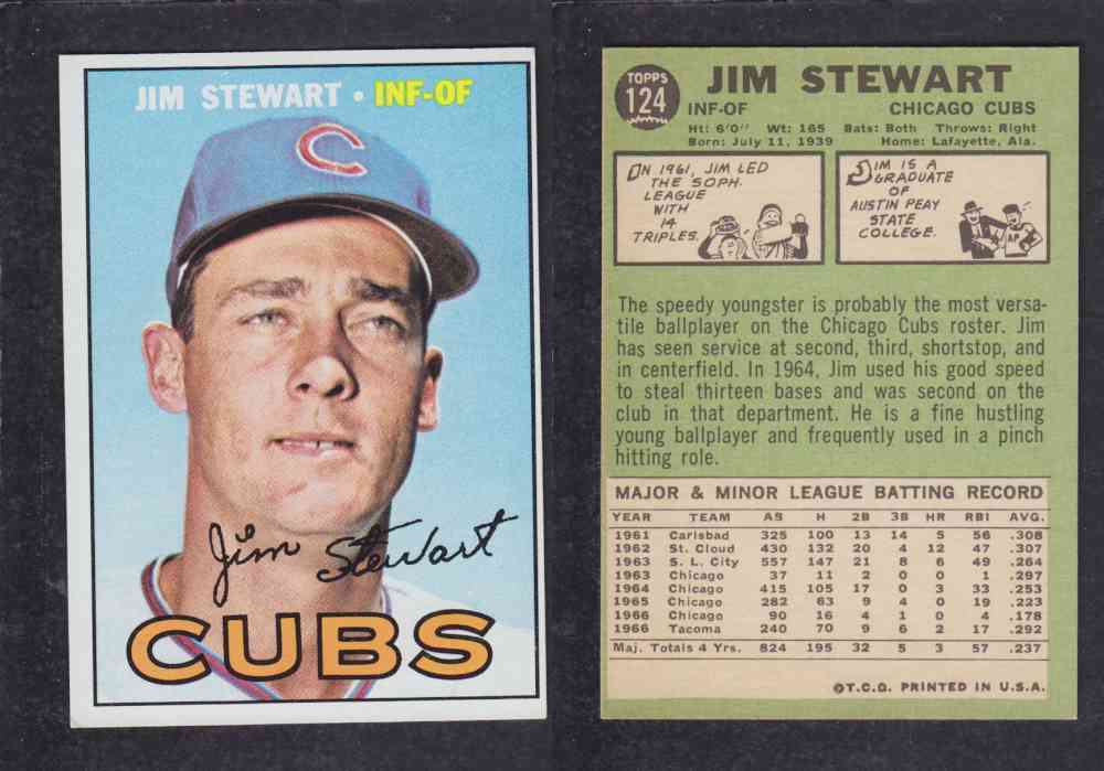 ITEM# : CS92466601 1967 TOPPS BASEBALL CARD #124 J. STEWART DESCRIPTION 1967 TOPPS BASEBALL CARD #124 J. STEWART CONDITION EX/MINT NO CREASE PRICE $1.99 USD SHIPPING CANADA RESIDENT 3.00$