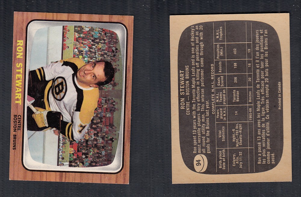 ITEM# : CS93077458 1966-67 TOPPS HOCKEY CARD #94 R. STEWART DESCRIPTION 1966-67 TOPPS HOCKEY CARD #94 R. STEWART CONDITION EX+ NO CREASE PRICE $5.99 USD SHIPPING CANADA RESIDENT 3.00$