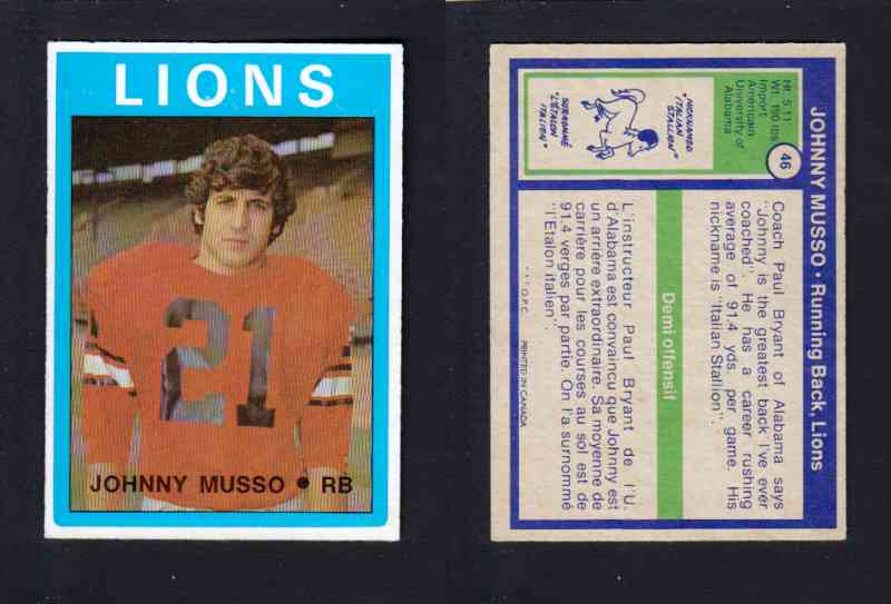 1972 CFL O-PEE-CHEE FOOTBALL CARD #46 J. MUSSO photo