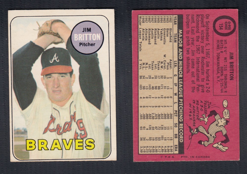 ITEM# : CS13524716 1969 O-PEE-CHEE BASEBALL CARD #154 J. BRITTON DESCRIPTION 1969 O-PEE-CHEE BASEBALL CARD #154 J. BRITTON CONDITION EX NO CREASE PRIX $2.99 USD EXPÉDITION CANADA RESIDENT $3.00