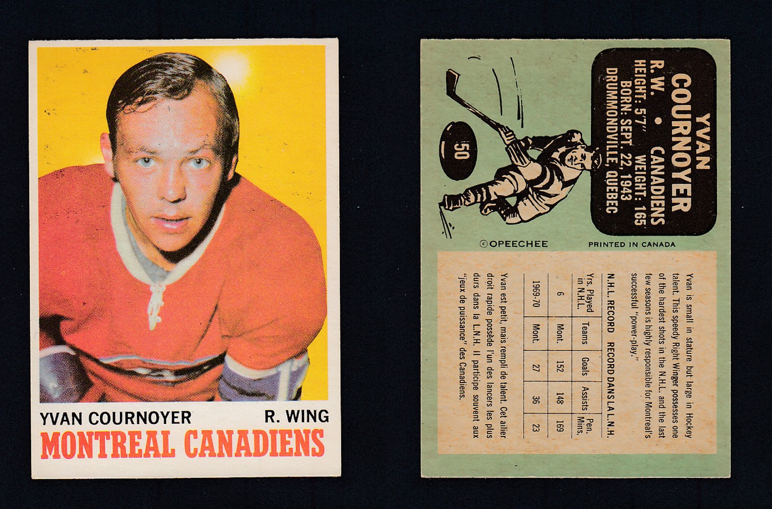 ITEM# : CS16407747 1970-71 O-PEE-CHEE HOCKEY CARD #50 Y. COURNOYER DESCRIPTION 1970-71 O-PEE-CHEE HOCKEY CARD #50 Y. COURNOYER CONDITION EX / MINT NO CREASE PRIX $11.99 USD EXPÉDITION CANADA RESIDENT 3.00$