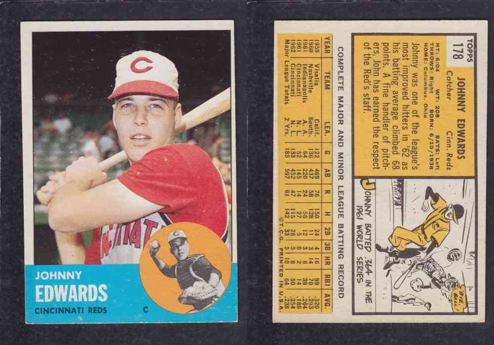 ITEM# : CS17310810 1963 TOPPS BASEBALL CARD #178 J. EDWARDS DESCRIPTION 1963 TOPPS BASEBALL CARD #178 J. EDWARDS CONDITION EX/MINT NO CREASE PRIX $1.99 USD EXPÉDITION CANADA RESIDENT 3.00$