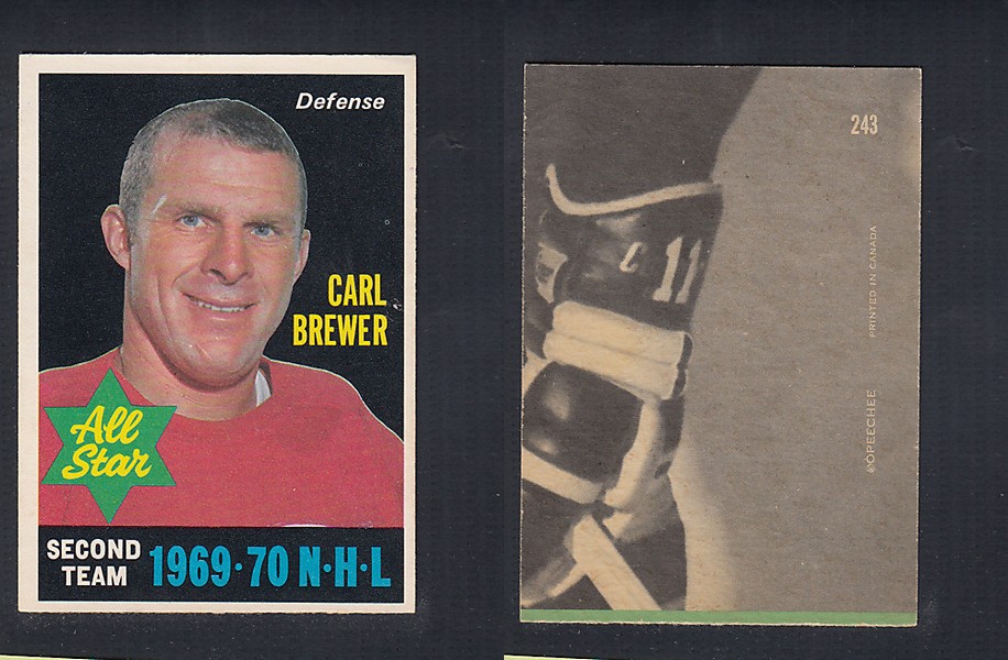 ITEM# : CS23175712 1970-71 O-PEE-CHEE HOCKEY CARD #243 ALL STAR: CARL BREWER DESCRIPTION 1970-71 O-PEE-CHEE HOCKEY CARD #243 ALL STAR: CARL BREWER CONDITION EX+ NO CREASE PRIX $2.99 USD EXPÉDITION CANADA RESIDENT 3.00$