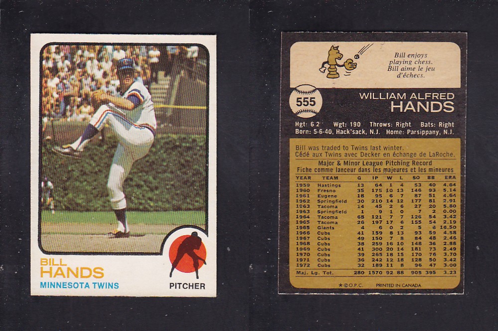 ITEM# : CS27413921 1973 O-PEE-CHEE BASEBALL CARD #555 B. HANDS DESCRIPTION 1973 O-PEE-CHEE BASEBALL CARD #555 B. HANDS CONDITION NRMINT NO CREASE PRIX $4.99 USD EXPÉDITION CANADA RESIDENT 3.00$