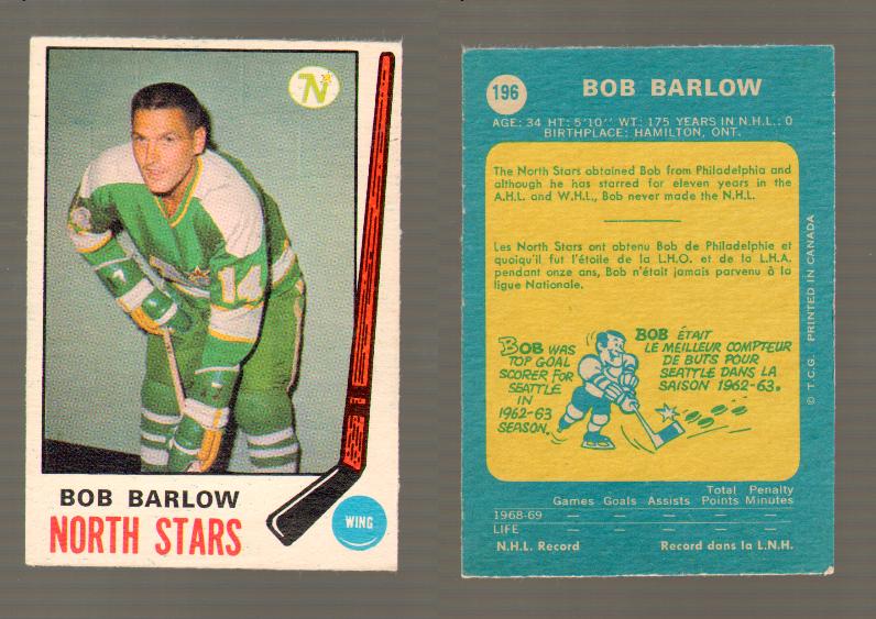 1969-70 O-PEE-CHEE HOCKEY CARD #196 BOB BARLOW
