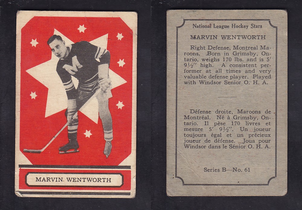 ITEM# : CS28091502 1933-34 O-PEE-CHEE HOCKEY CARD SER. A #61 M. WENTWORTH DESCRIPTION 1933-34 O-PEE-CHEE HOCKEY CARD SER. A #61 M. WENTWORTH CONDITION VG 1 CORNER CREASE PRIX $59.99 USD EXPÉDITION CANADA RESIDENT 3.00$