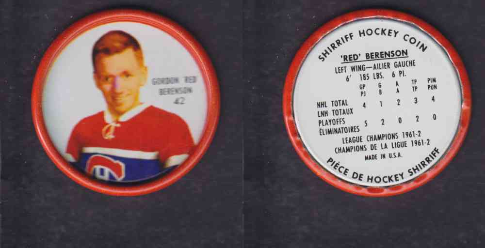 1962-63 SHIRRIFF HOCKEY COIN #42 G. BERENSON photo