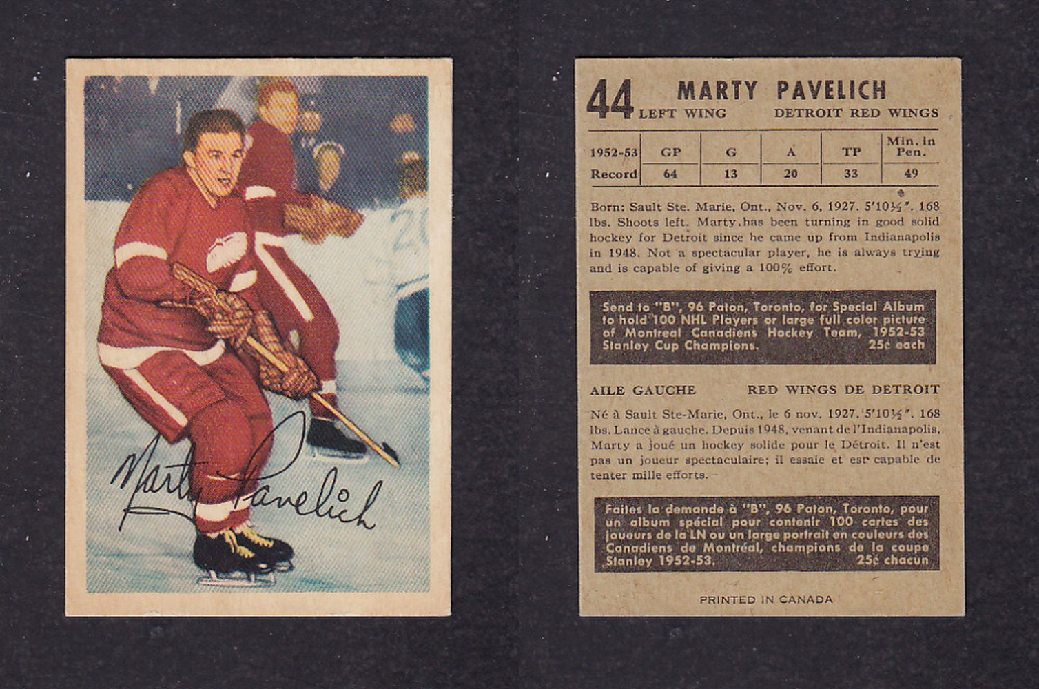 ITEM# : CS29920715 1953-54 PARKHURST HOCKEY CARD #44 M. PAVELICH DESCRIPTION 1953-54 PARKHURST HOCKEY CARD #44 M. PAVELICH CONDITION EX+ NO CREASE PRIX $19.99 USD EXPÉDITION CANADA RESIDENT 3.00$