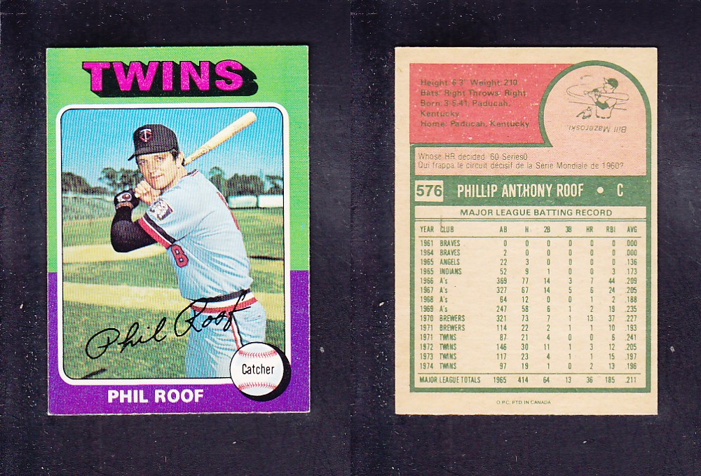 ITEM# : CS31509063 1975 O-PEE-CHEE BASEBALL CARD #576 P. ROOF DESCRIPTION 1975 O-PEE-CHEE BASEBALL CARD #576 P. ROOF CONDITION EX/MINT NO CREASE PRIX $2.99 USD EXPÉDITION CANADA RESIDENT 3.00$
