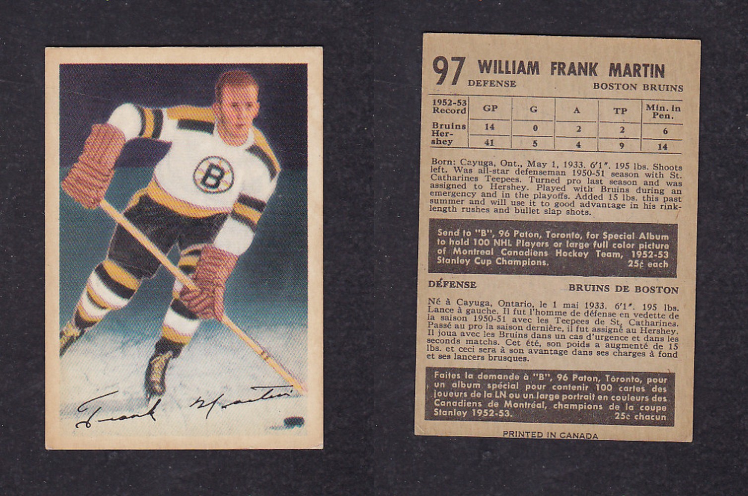 ITEM# : CS35485284 1953-54 PARKHURST HOCKEY CARD #97 W. MARTIN DESCRIPTION 1953-54 PARKHURST HOCKEY CARD #97 W. MARTIN CONDITION EX NO CREASE PRIX $19.99 USD EXPÉDITION CANADA RESIDENT 3.00$
