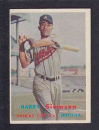 ITEM# : CS36295793 1957 TOPPS BASEBALL CARD #225 H. SIMPSON DESCRIPTION 1958 TOPPS BASEBALL CARD #225 H. SIMPSON CONDITION EX+ NO CREASE PRIX $2.99 USD EXPÉDITION CANADA RESIDENT 3.00$