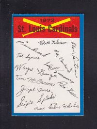 ITEM# : CS36939358 1973 O-PEE-CHEE BASEBALL CARD TEAM CHECKLISTS ST. LOUIS CARDINALS DESCRIPTION 1973 O-PEE-CHEE BASEBALL CARD TEAM CHECKLISTS ST. LOUIS CARDINALS CONDITION NRMINT NO CREASE PRIX $4.99 USD EXPÉDITION CANADA RESIDENT 3.00$