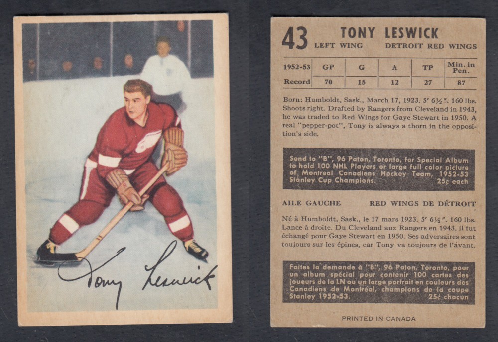 ITEM# : CS44978373 1953-54 PARKHURST HOCKEY CARD #43 T. LESWICK DESCRIPTION 1953-54 PARKHURST HOCKEY CARD #43 T. LESWICK CONDITION EX - NO CREASES PRIX $19.99 USD EXPÉDITION CANADA RESIDENT 3.00$