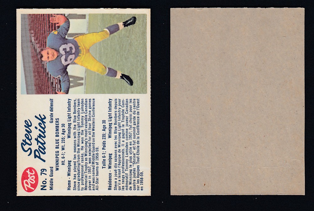 ITEM# : CS50617892 1962 CFL POST FOOTBALL CARD #79 S. PATRICK DESCRIPTION 1962 CFL POST FOOTBALL CARD #79 S. PATRICK CONDITION HAND CUT PRIX $14.99 USD EXPÉDITION CANADA RESIDENT 3.00$