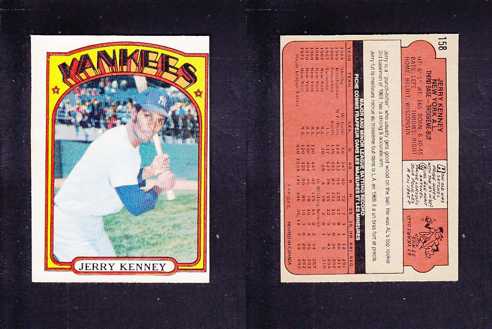 ITEM# : CS54583715 1972 O-PEE-CHEE BASEBALL CARD #158 J. KENNEY DESCRIPTION 1972 O-PEE-CHEE BASEBALL CARD #158 J. KENNEY CONDITION EX/MINT NO CREASE PRIX $2.99 USD EXPÉDITION CANADA RESIDENT 3.00$