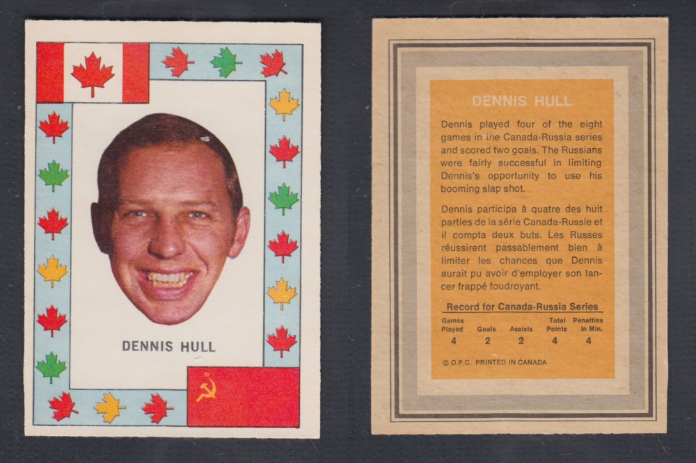 ITEM# : CS57502067 1972-73 O-PEE-CHEE TEAM CANADA D. HULL DESCRIPTION 1972-73 O-PEE-CHEE TEAM CANADA D. HULL CONDITION EX/MINT NO CREASE PRIX $7.99 USD EXPÉDITION CANADA RESIDENT 3.00$