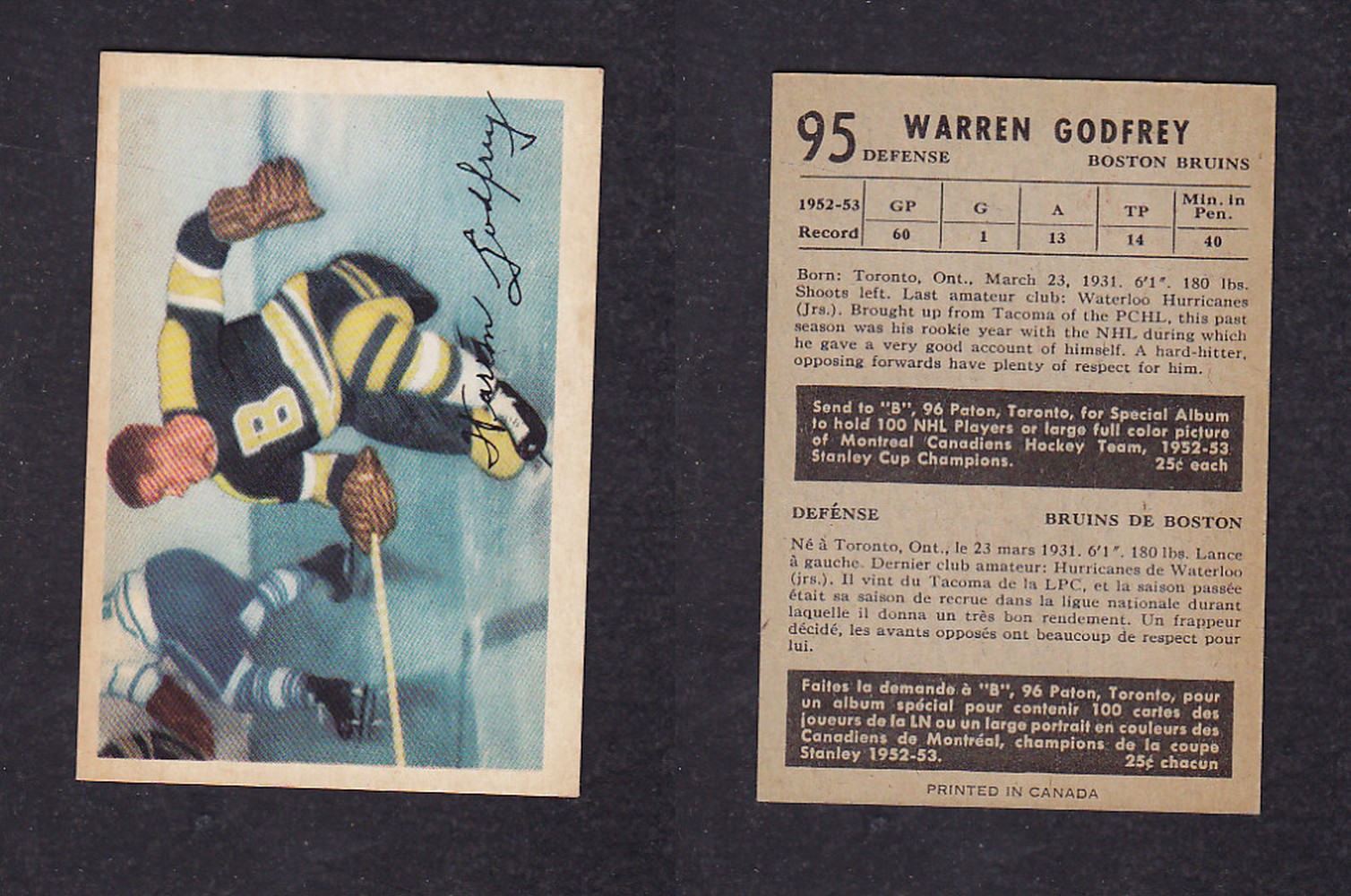 ITEM# : CS58711499 1953-54 PARKHURST HOCKEY CARD #95 W. GODFREY DESCRIPTION 1953-54 PARKHURST HOCKEY CARD #95 W. GODFREY CONDITION EX/MINT NO CREASE PRIX $29.99 USD EXPÉDITION CANADA RESIDENT 3.00$