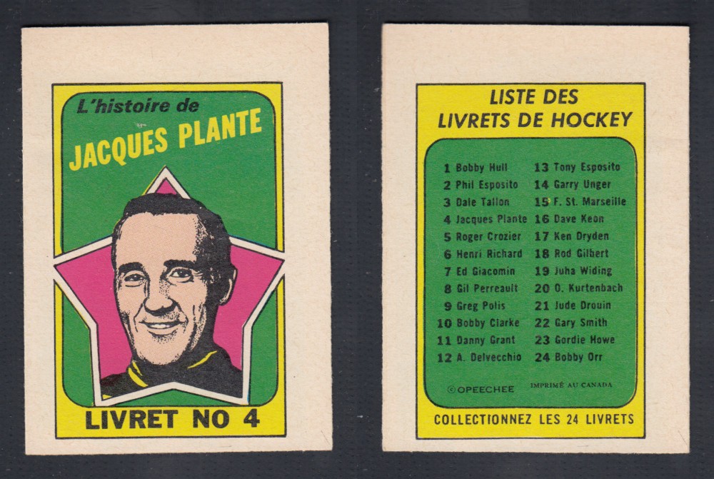 ITEM# : CS61105055 1971-72 O-PEE-CHEE STORY BOOKLET FRENCH #4 J. PLANTE DESCRIPTION 1971-72 O-PEE-CHEE STORY BOOKLET FRENCH #4 J. PLANTE CONDITION EX/MINT