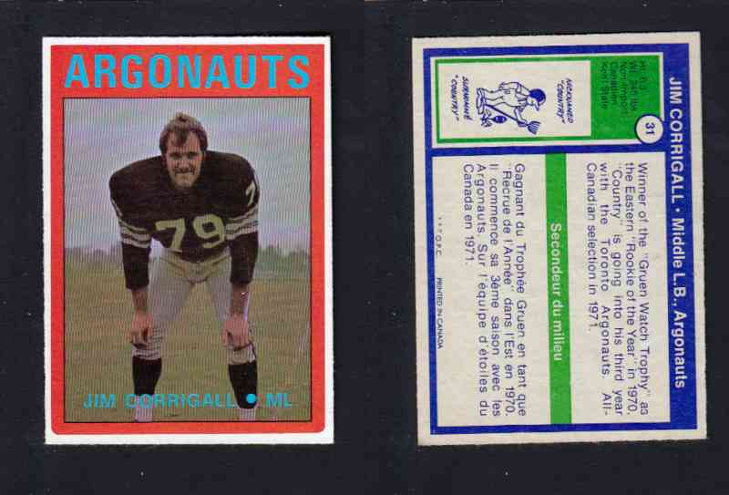 ITEM# : CS61984947 1972 CFL O-PEE-CHEE FOOTBALL CARD #31 J. CORRIGALL DESCRIPTION 1972 CFL O-PEE-CHEE FOOTBALL CARD #31 J. CORRIGALL CONDITION EX+ NO CREASE PRIX $4.99 USD EXPÉDITION CANADA RESIDENT $3.00