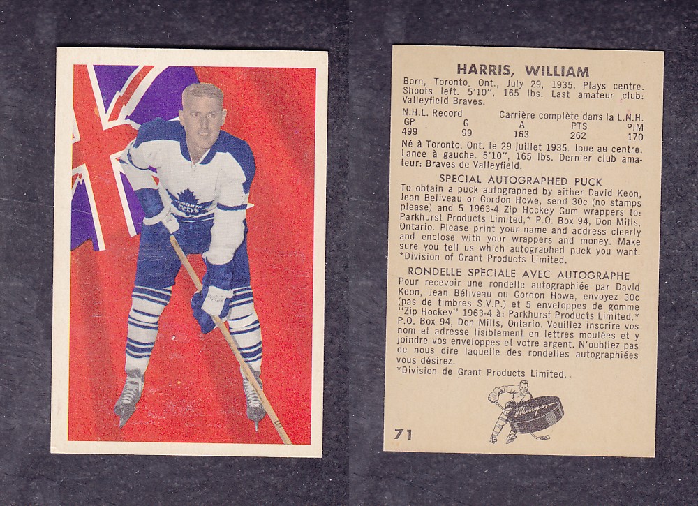 ITEM# : CS63763687 1963-64 PARKHURST HOCKEY CARD #71 W. HARRIS DESCRIPTION 1963-64 PARKHURST HOCKEY CARD #71 W. HARRIS CONDITION EX+ NO CREASE PRIX $5.99 USD EXPÉDITION CANADA RESIDENT 3.00$