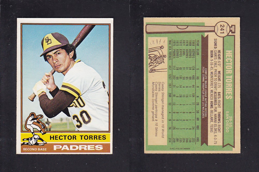 ITEM# : CS67684698 1976 O-PEE-CHEE BASEBALL CARD #241 H. TORRES DESCRIPTION 1976 O-PEE-CHEE BASEBALL CARD #241 H. TORRES CONDITION EX/MINT NO CREASE PRIX $1.99 USD EXPÉDITION CANADA RESIDENT 3.00$