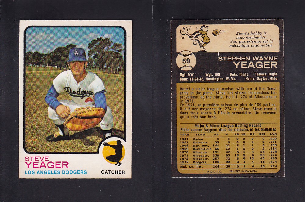 ITEM# : CS68711756 1973 O-PEE-CHEE BASEBALL CARD #59 S. YEAGER DESCRIPTION 1973 O-PEE-CHEE BASEBALL CARD #59 S. YEAGER CONDITION EX/MINT NO CREASE PRIX $2.99 USD EXPÉDITION CANADA RESIDENT 3.00$