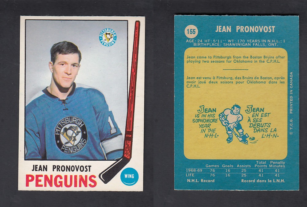 ITEM# : CS73208515 1969-70 O-PEE-CHEE HOCKEY CARD #155 J. PRONOVOST DESCRIPTION 1969-70 O-PEE-CHEE HOCKEY CARD #155 J. PRONOVOST CONDITION EX/MINT NO CREASE PRIX $5.99 USD EXPÉDITION CANADA RESIDENT 3.00$