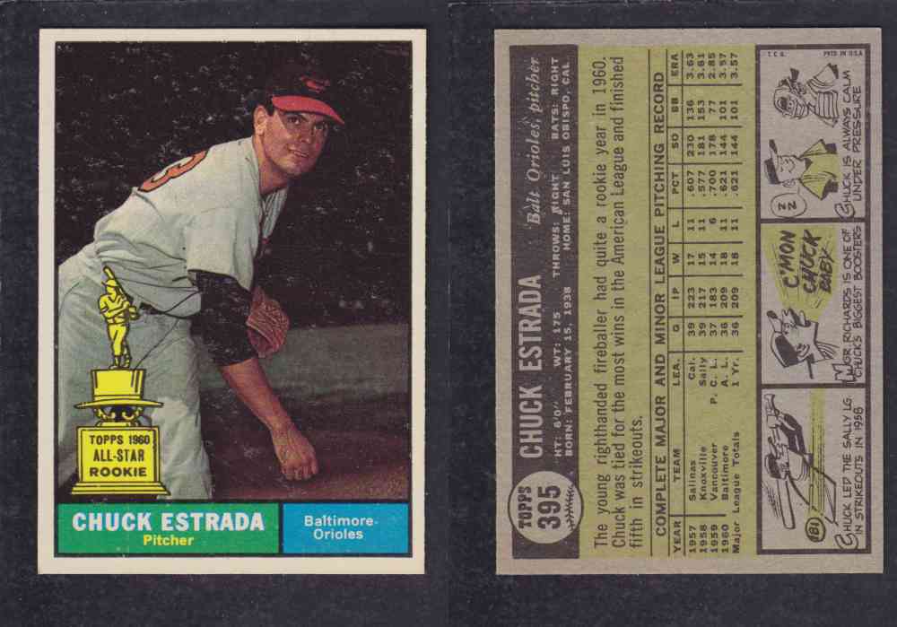 ITEM# : CS73704723 1961 TOPPS BASEBALL CARD #395 C. ESTRADA DESCRIPTION 1961 TOPPS BASEBALL CARD #395 C. ESTRADA CONDITION EX/MINT NO CREASE PRIX $1.99 USD EXPÉDITION CANADA RESIDENT 3.00$