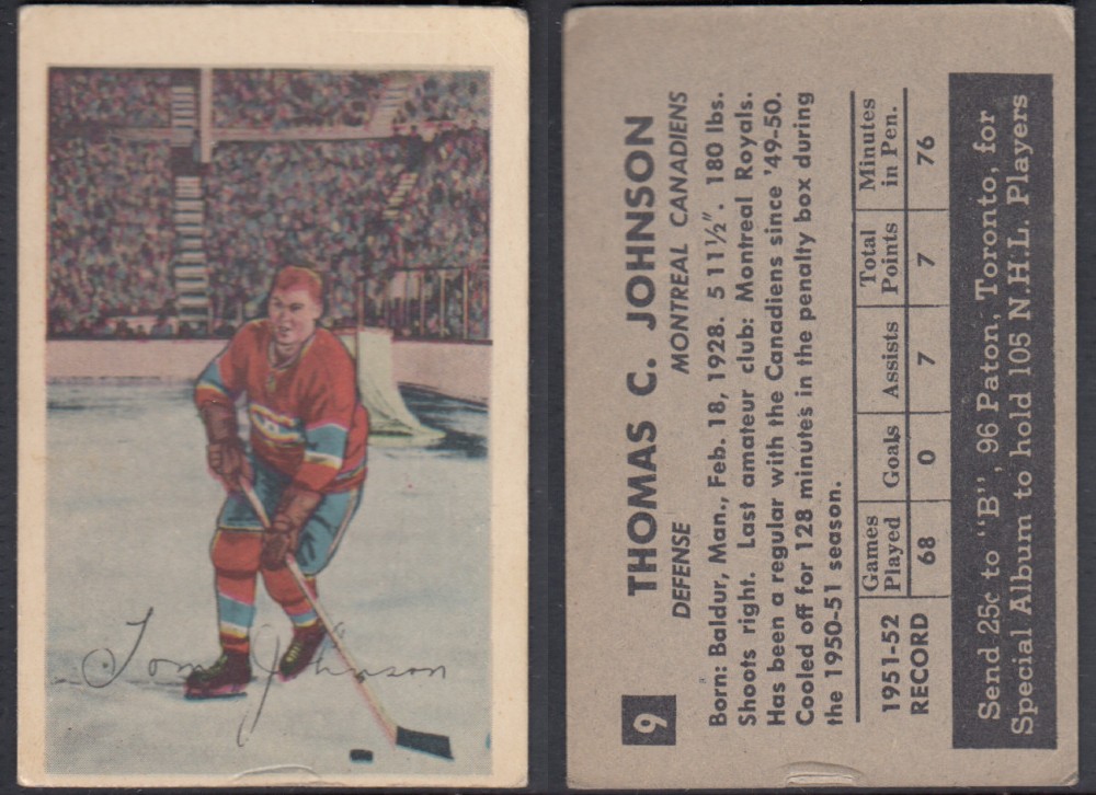 ITEM# : CS80447309 1952-53 PARKHURST HOCKEY CARD #9 T. JOHNSON DESCRIPTION 1952-53 PARKHURST HOCKEY CARD #9 T. JOHNSON CONDITION VG - NO CREASES PRIX $11.99 USD EXPÉDITION CANADA RESIDENT 3.00$