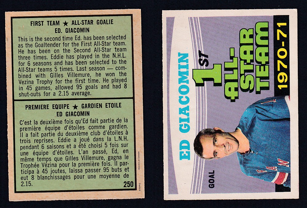 ITEM# : CS81753612 1971-72 O-PEE-CHEE HOCKEY CARD #250 FIRST TEAM ALL STAR: E. GIACOMIN DESCRIPTION 1971-72 O-PEE-CHEE HOCKEY CARD #250 FIRST TEAM ALL STAR: E. GIACOMIN CONDITION EX+ NO CREASE PRIX $2.99 USD EXPÉDITION CANADA RESIDENT 3.00$