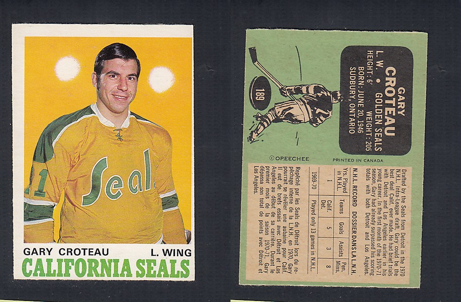 ITEM# : CS84487656 1970-71 O-PEE-CHEE HOCKEY CARD #189 G. CROTEAU DESCRIPTION 1970-71 O-PEE-CHEE HOCKEY CARD #189 G. CROTEAU CONDITION EX/MINT NO CREASE PRIX $4.99 USD EXPÉDITION CANADA RESIDENT 3.00$