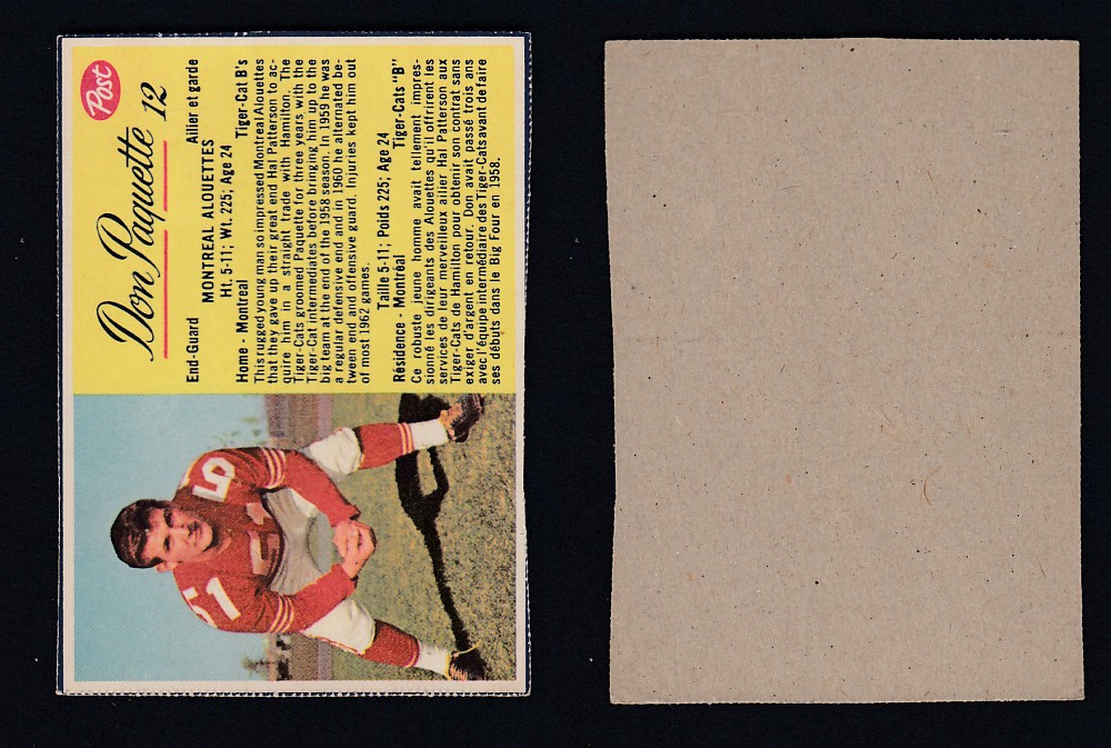 ITEM# : CS84971079 1963 CFL POST FOOTBALL CARD #12 D. PAQUETTE DESCRIPTION 1963 CFL POST FOOTBALL CARD #12 D. PAQUETTE CONDITION HAND CUT PRIX $4.99 USD EXPÉDITION CANADA RESIDENT 3.00$