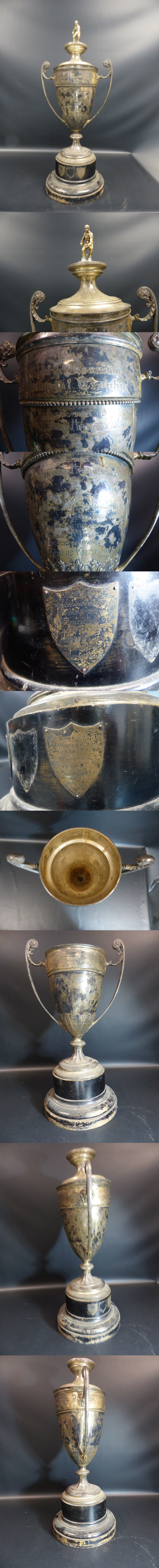 ITEM# : CS86076450 1927 NHL MONTREAL CANADIENS / MAROONS GEORGE KENNEDY MEMORIAL TROPHY DESCRIPTION THIS CUP WAS OFFERED DURING 10 YEARS TO THE WINNERS IN THE REGULAR SEASON BETWEEN THE CANADIENS AND THE MAROONS. IT IS MADE OF STERLING SILVER AND MEASURES 33 INCHES HIGH. OVERALL THE CUP IS IN GREAT CONDITION EXCEPT FOR PLAQUE AT THE BOTTOM IS MISSING. BOTH ELEMENTS CAN BE REPLACED. THIS IS A UNIQUE PIECE AND A GOOD SOUVENIR OF THE 10 YEARS RIVALITY BETWEEN THE 2 CLUBS OF MONTREAL. THIS TROPHY WAS KEPT FOR YEARS AT THE FORUM AND WHEN THEY RESTORED THE FORUM IN 1968 THEY MADE SOME CLEANING. THE EMPLOYEE WAS SUPPOSE TO DESTROY THE CUP BUT DECIDED TO BRING IT AT HOME AND USE AS ASHTREY IN HIS BASEMENT, UNTIL HE BROUGHT IT TO US. CONDITION 33 INCHES HIGH PRIX $24999.99 USD EXPÉDITION CANADA RESIDENT 50.00$