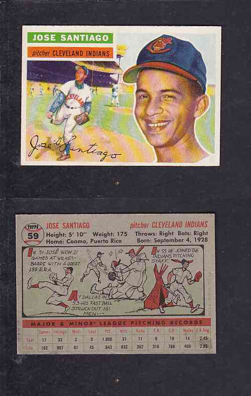 ITEM# : CS88096057 1956 TOPPS BASEBALL CARD #59 J. SANTIAGO DESCRIPTION 1956 TOPPS BASEBALL CARD #59 J. SANTIAGO CONDITION EX+ NO CREASE PRIX $4.99 USD EXPÉDITION CANADA RESIDENT $3.00